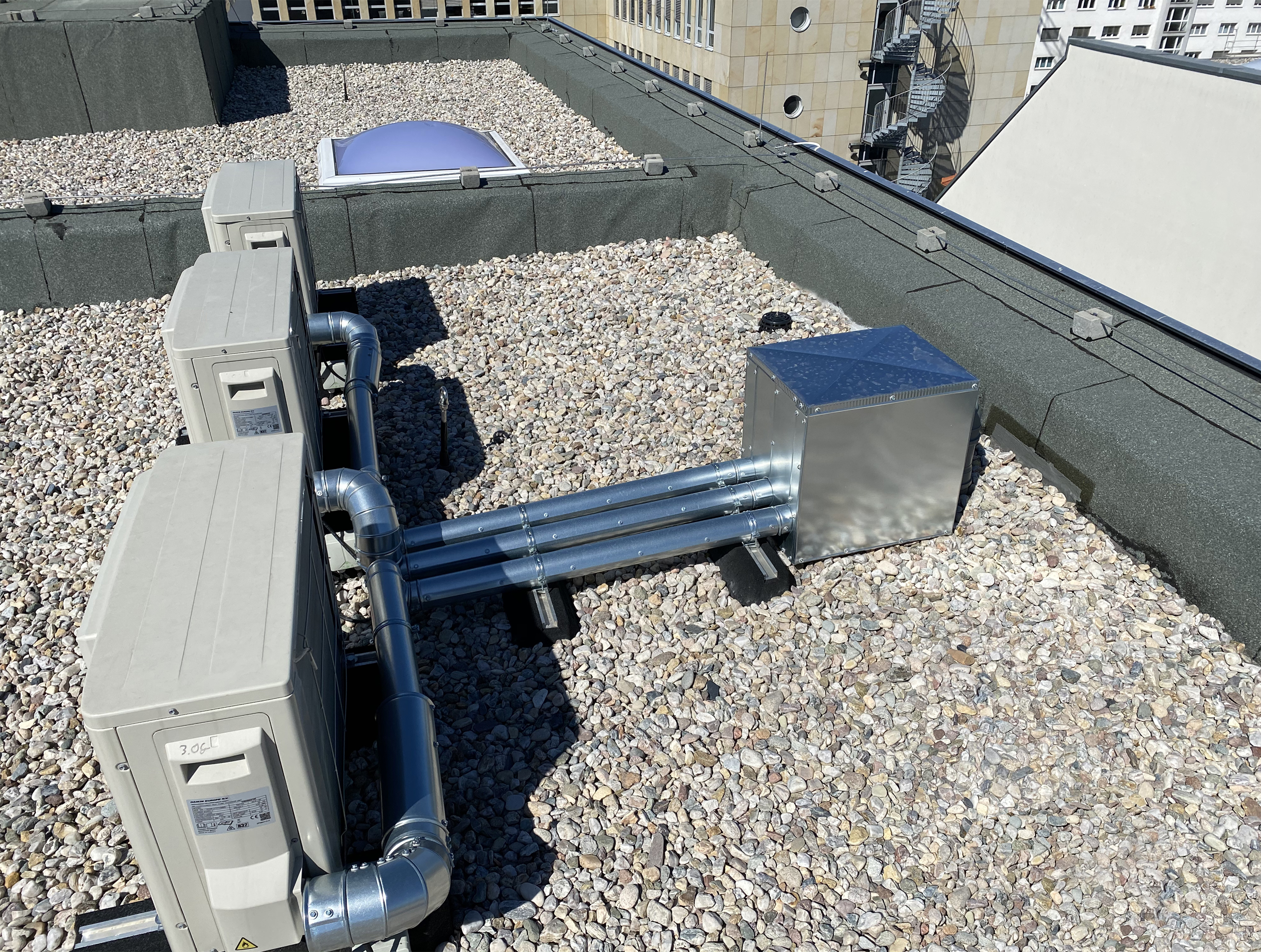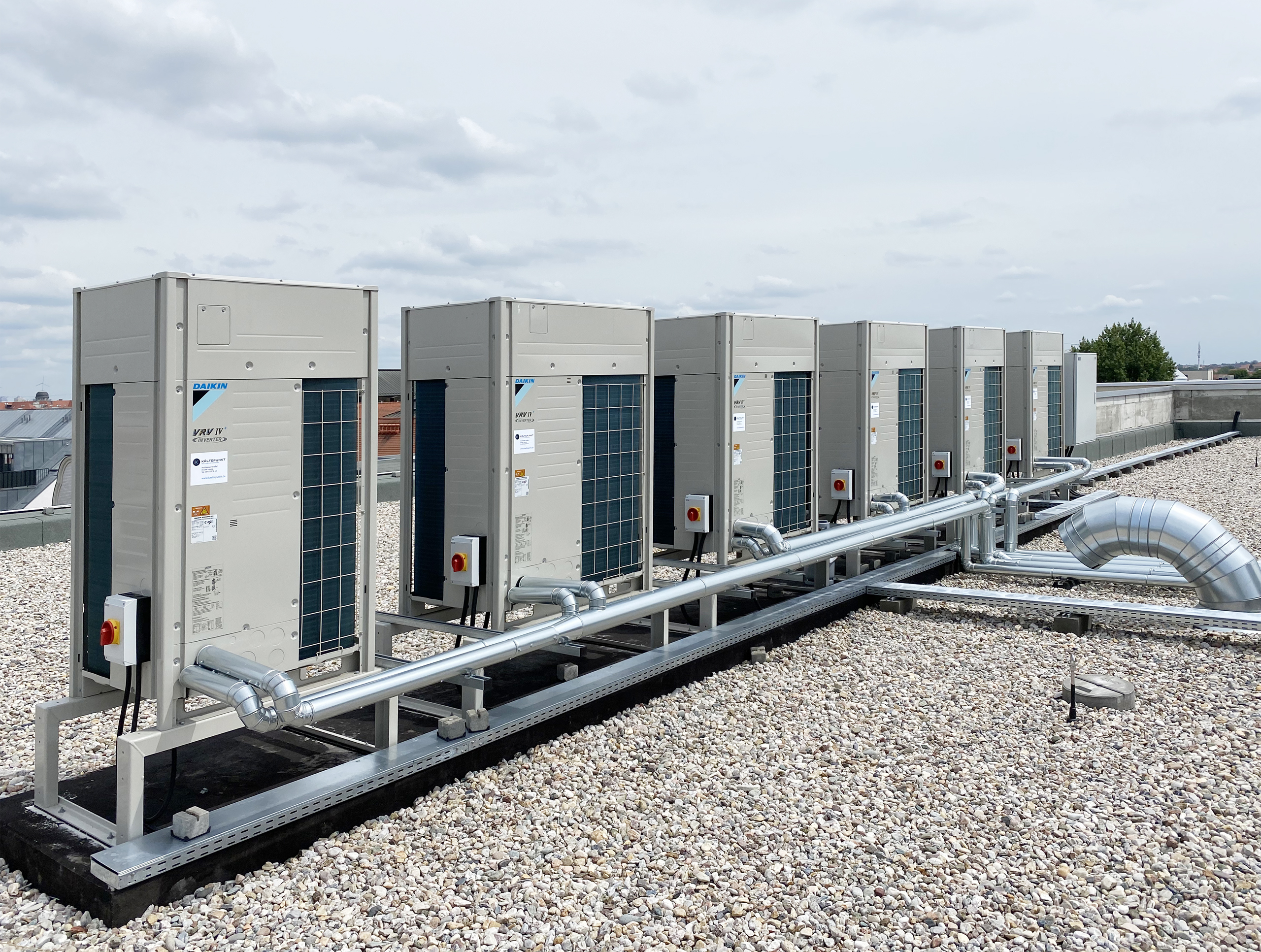 Es wurden hierbei 3 VRV – Anlagen und 3 Split – Anlage bestehend aus 9 Außengeräten und 66 Inneneinheiten errichtet. Die besondere Herausforderung stellte sich im Transport der Außengeräte mittels Kran sowie die Koordinierung mehrere Gewerke dar.